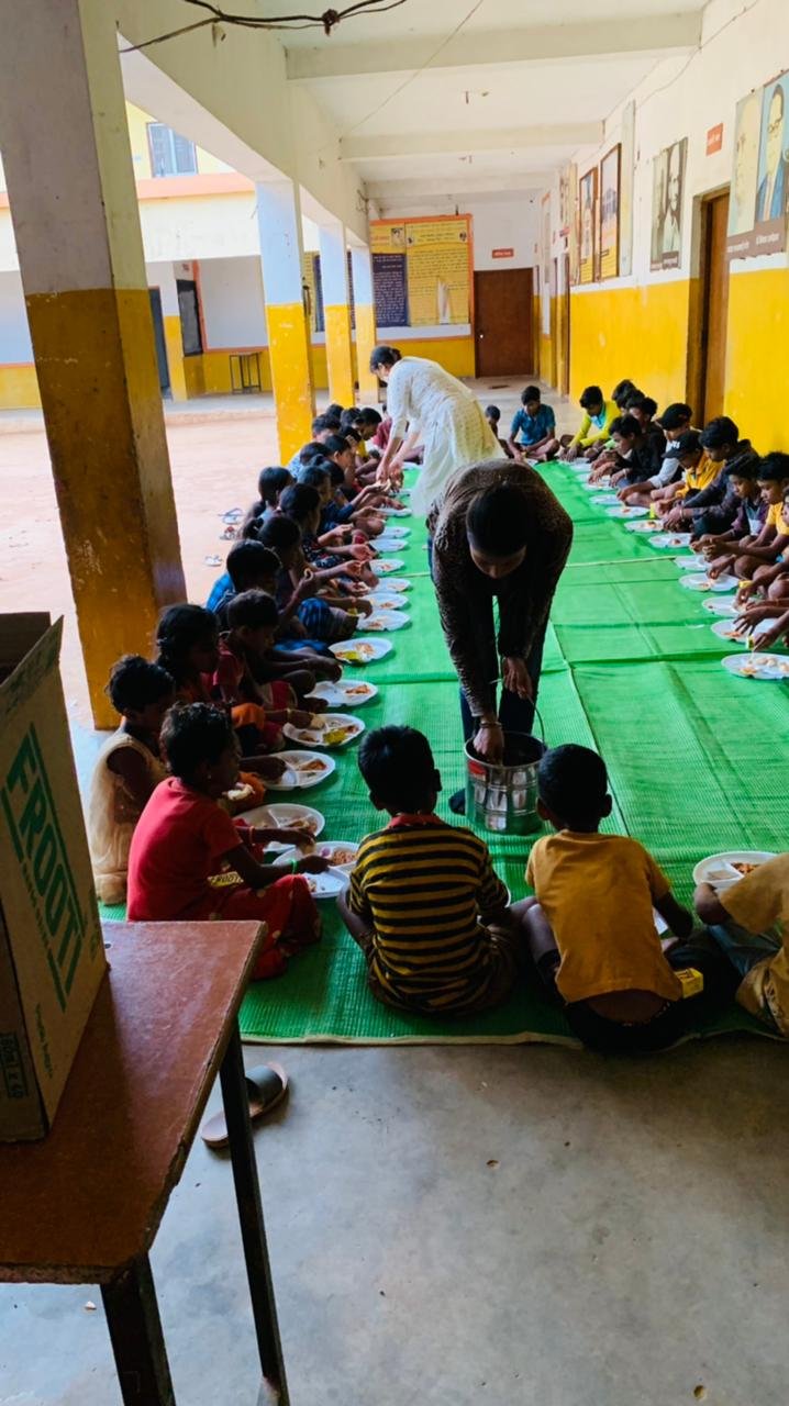 On December 31st, Sushma Wings distributed biscuits, cakes, and water bottles to students at an Ashram, celebrating the end of the year with a gesture of care and kindness