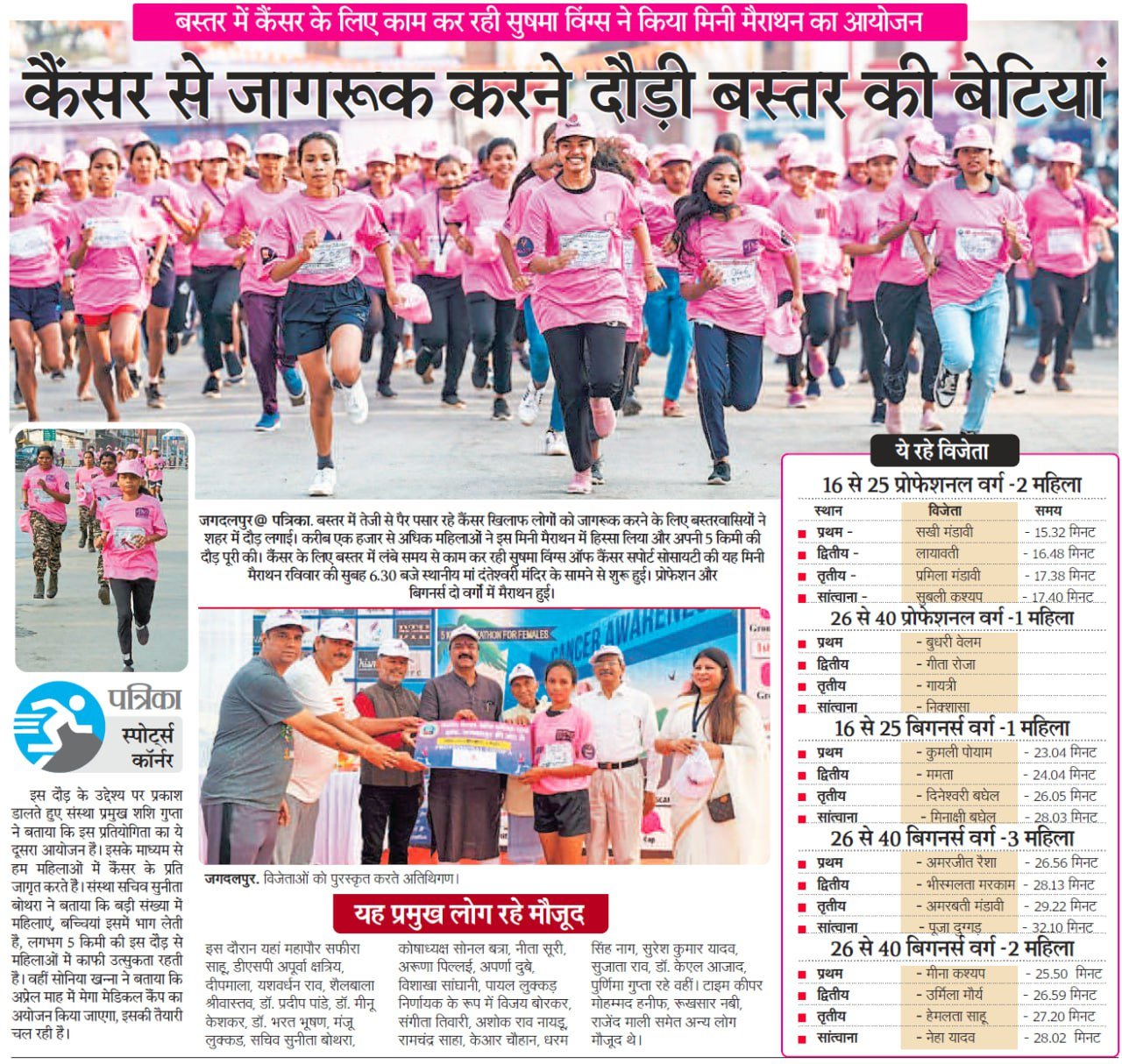 On March 10th, Sushma Wings organized a women-only walkathon that brought together 700 participants in a powerful display of unity against cancer. This event was more than just a walk; it was a celebration of women’s health and a call to action for cancer awareness. Participants walked through key areas of the city, spreading messages of prevention and early detection, while also promoting the importance of regular health check-ups. The walkathon was a testament to the collective strength of women in the fight against cancer.
